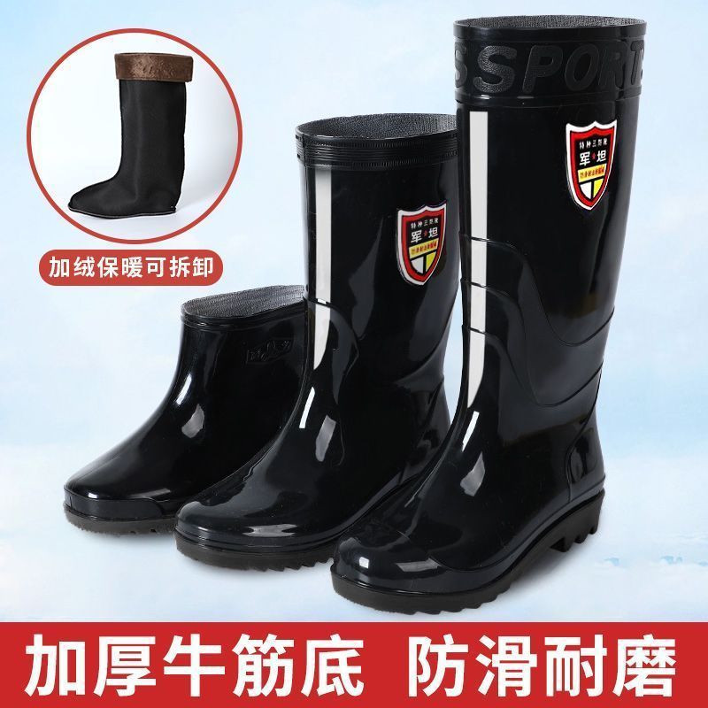 正規品高筒雨靴男性用釣りゴム靴水靴ベルベット長筒雨靴滑り止め低腰水靴男