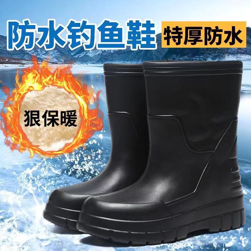2023冬ベルベット釣り靴防水雪雨靴滑り止め高筒キッチンeva保温靴軽量滑り止め