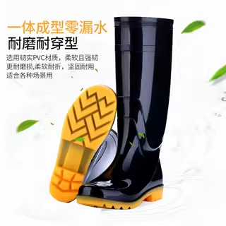 PVC防水一体成型雨靴ファッション男性用成人学生の中で厚い底の工事現場の釣り滑り止めゴム靴を手伝います。