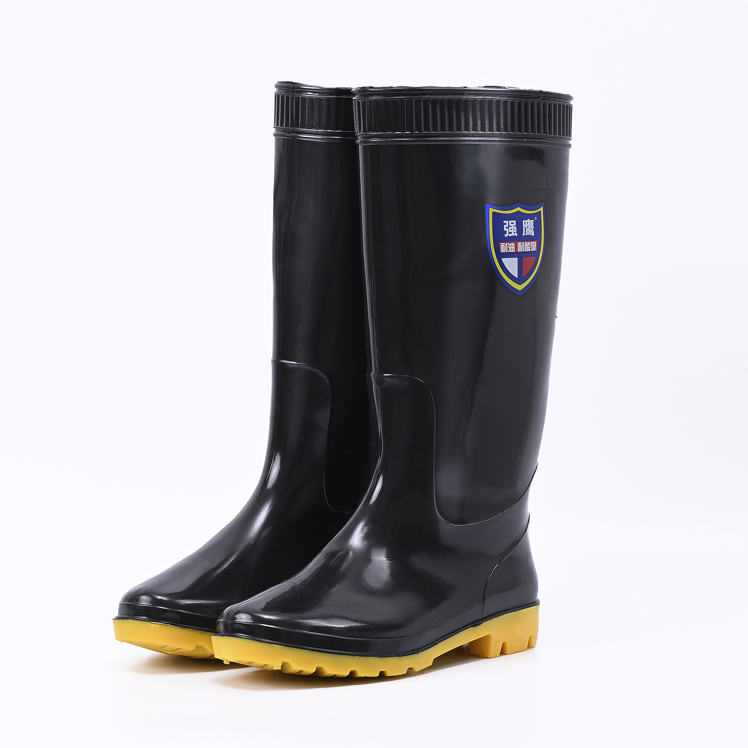 強鷹黒色工鉱水靴高筒雨靴工事現場労働保護男性耐摩耗性滑り止め絶縁雨靴メーカー卸売り