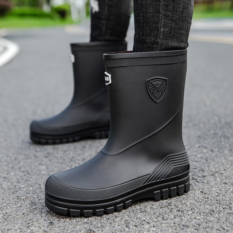 クロスボーダー男性雨靴ファッション中筒水靴防水滑り止め雨靴キッチン洗車水靴アウトドア作業ゴム靴