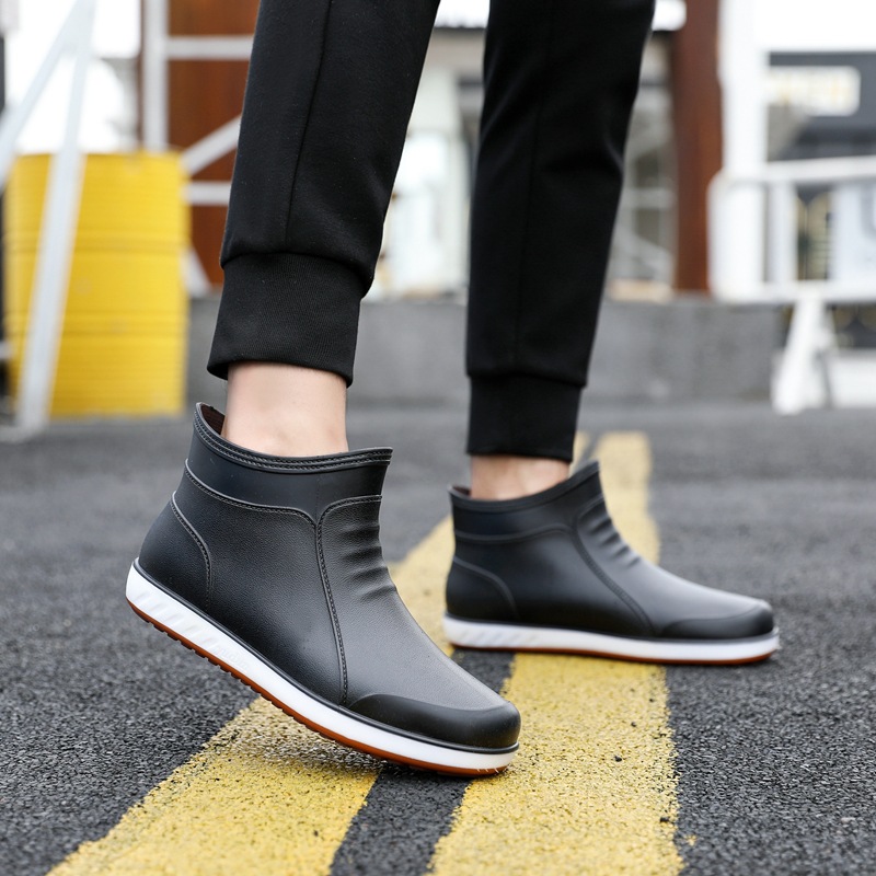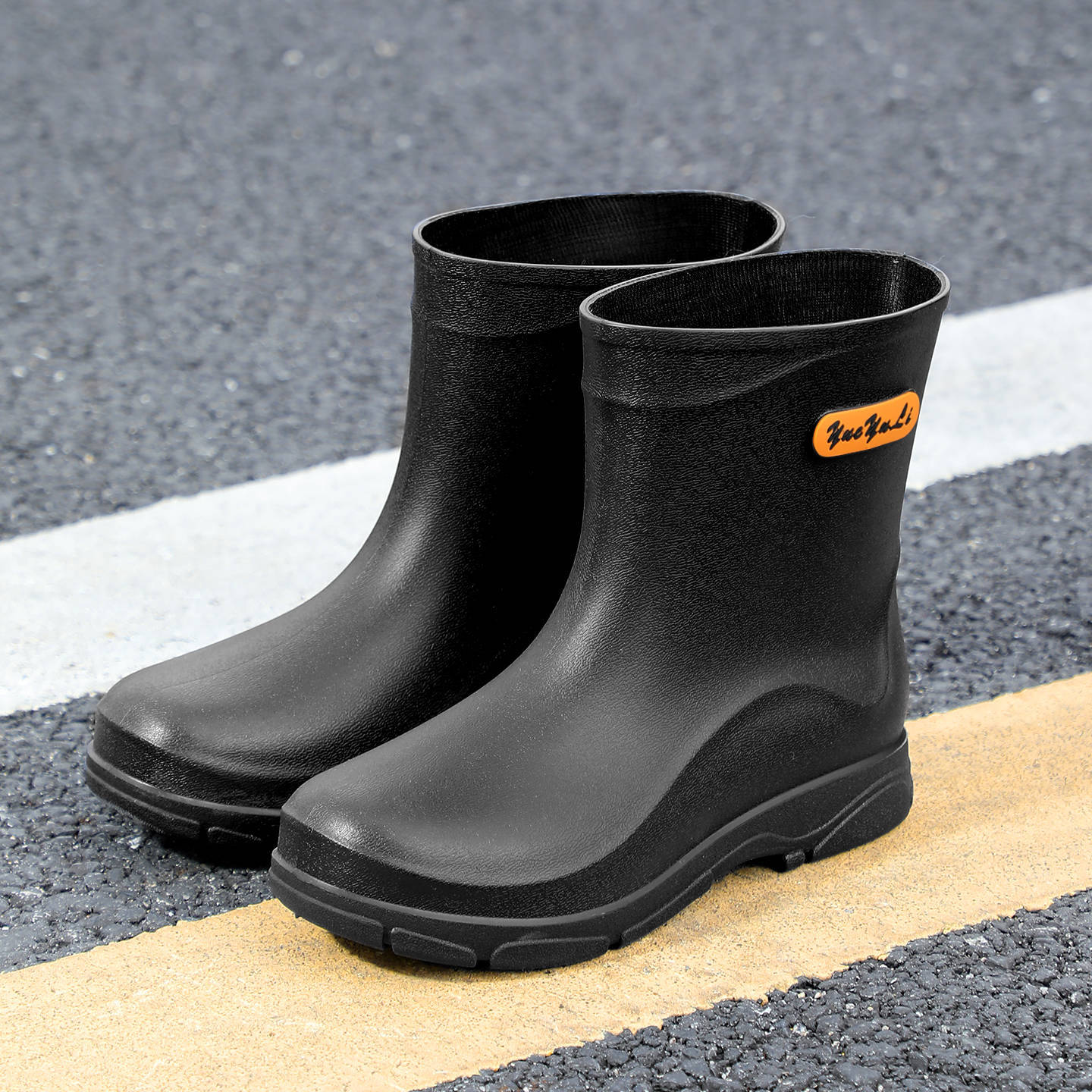 雨靴男性用中筒雨靴低筒水靴ファッション滑り止め防水短筒厚い底PVC耐磨耗作業水靴