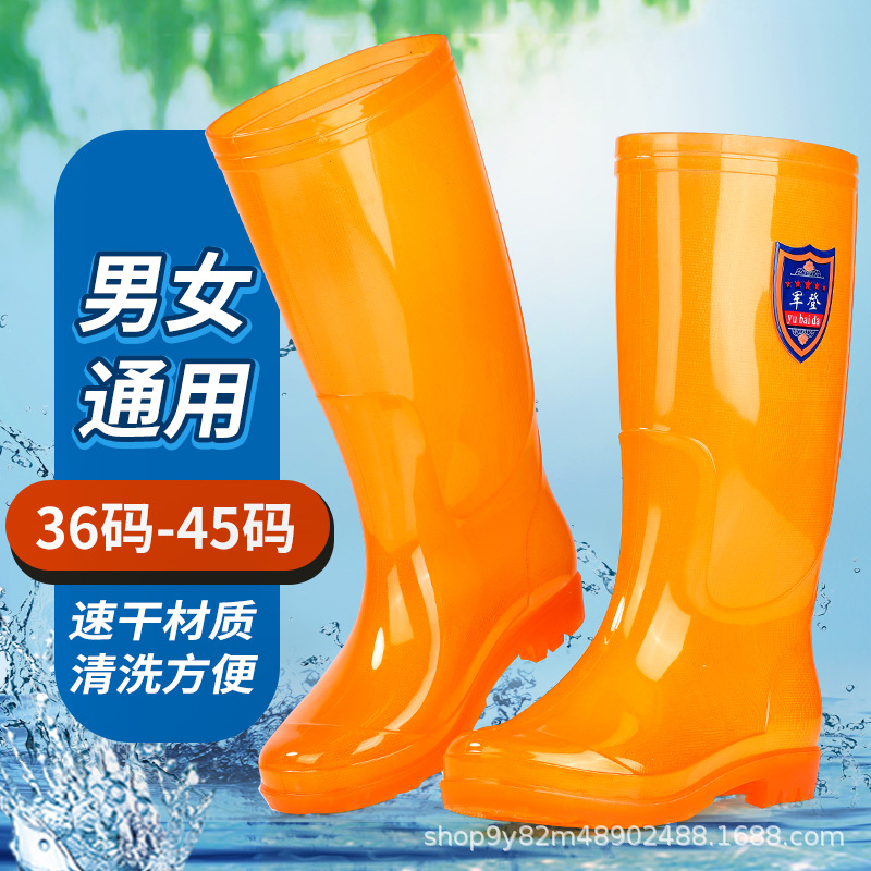 ハイチューブ、ミッドチューブ、ゴールドカラー、速乾性、裏地なしのレインブーツ、アウターウェア、防水性、厚みのある耐酸性および耐アルカリ性のゴム靴、男性用冬用暖かい靴