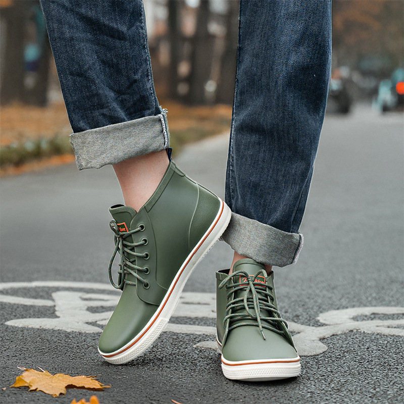 クロスボーダー高級レインブーツメンズショートローカットノンスリップフィッシングレインブーツレースアップファッションレインブーツレディースシューズカップルスニーカー
