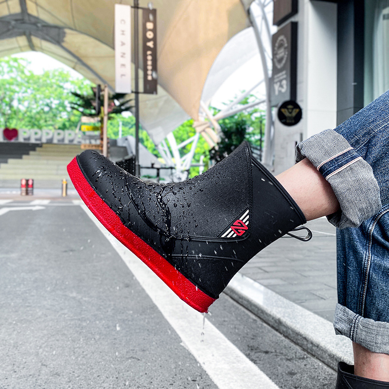 春と秋のファッション防水ラバーシューズスポーツバージョンショートレインブーツメンズ通勤アウターウェアノンスリップフィッシングウォーターシューズショートウォーターブーツ