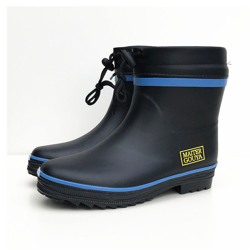 男性雨靴黒黄底中筒靴滑り止め工事現場労働保護雨靴雨靴メーカー卸売り