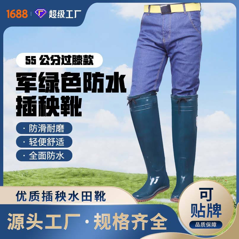 メンズミリタリーグリーン水田農作業用安全雨靴、滑り止め、耐摩耗性、田植え用シューズ、釣り用防水ハイカット農作業用シューズ