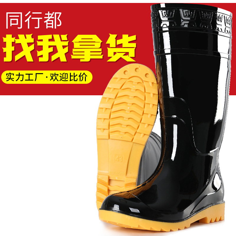 雨靴厚手の労働保護工事現場pvc雨靴男滑り止め耐摩耗性ゴム靴厚手の牛筋高筒水靴卸売り