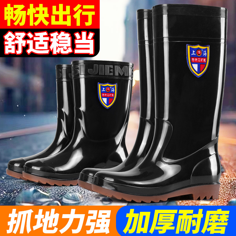 ハイトップレインブーツ、黒のロングレインブーツ、四季通用滑り止め、防水、耐摩耗性、中短チューブ労働保護防水ブーツ、メンズウォーターシューズ