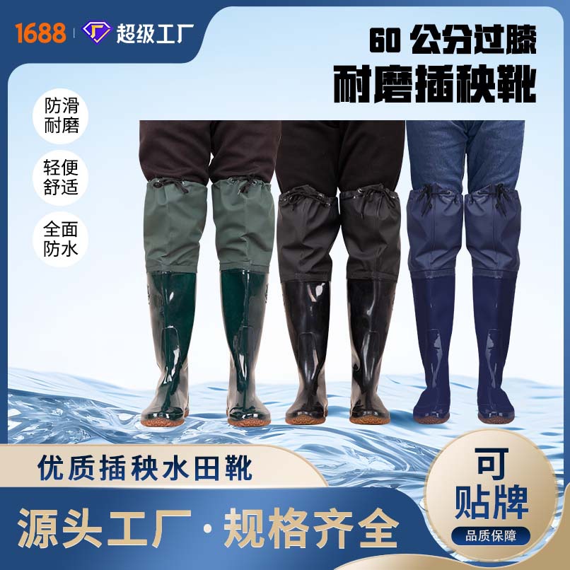 新型の男女の高い筒の防水の足のズボンは膝の田植えの靴の水田の靴の渉水の魚を捕る雨の靴はレンコンを掘って釣りをして卸売りします。