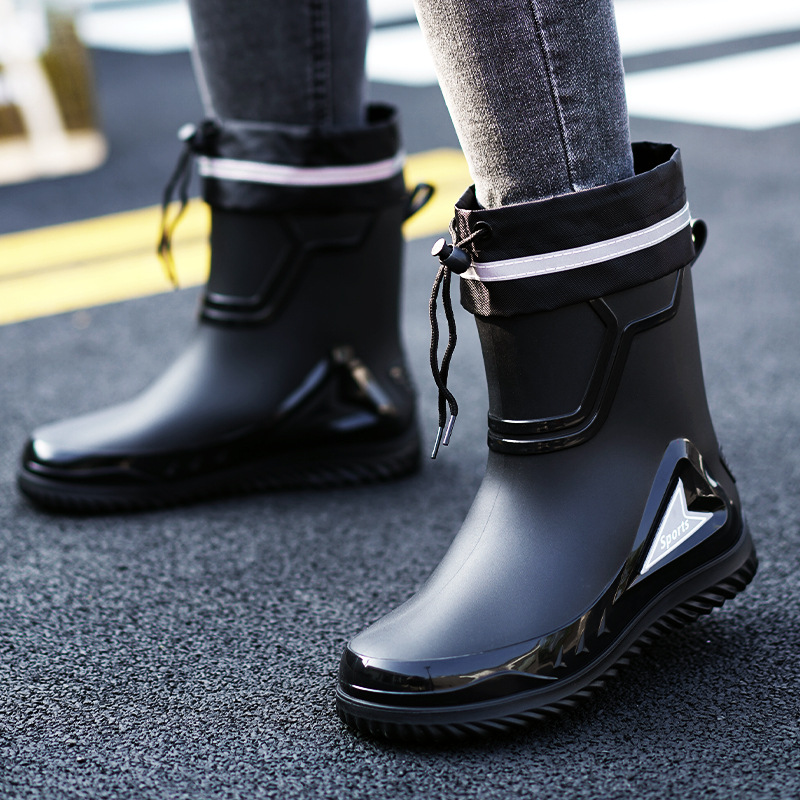 ファッション雨靴男性ショートブーツ中筒水靴高筒防水ゴム靴束口作業雨靴卸売り