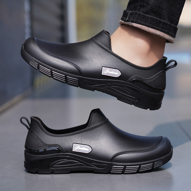 2025新型男性雨靴滑り止め防水ショートブーツの出前騎手ゴム靴キッチンの仕事外に水靴を履く