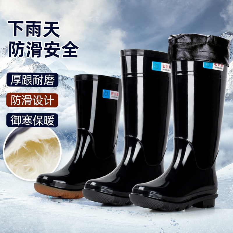 ベルベット労働保護男性高筒雨靴男性卸売り厚長筒綿工事現場男性用滑り止めブーツ