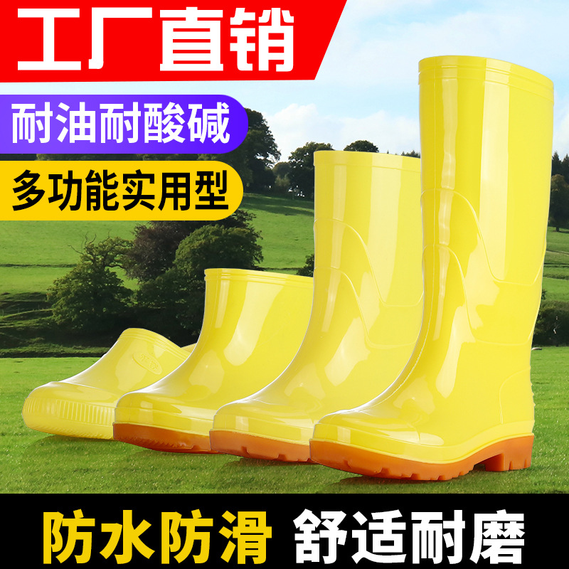 工場は卸売り労働保護雨靴水靴水靴男女成人防水滑り止め牛筋底高筒中低筒