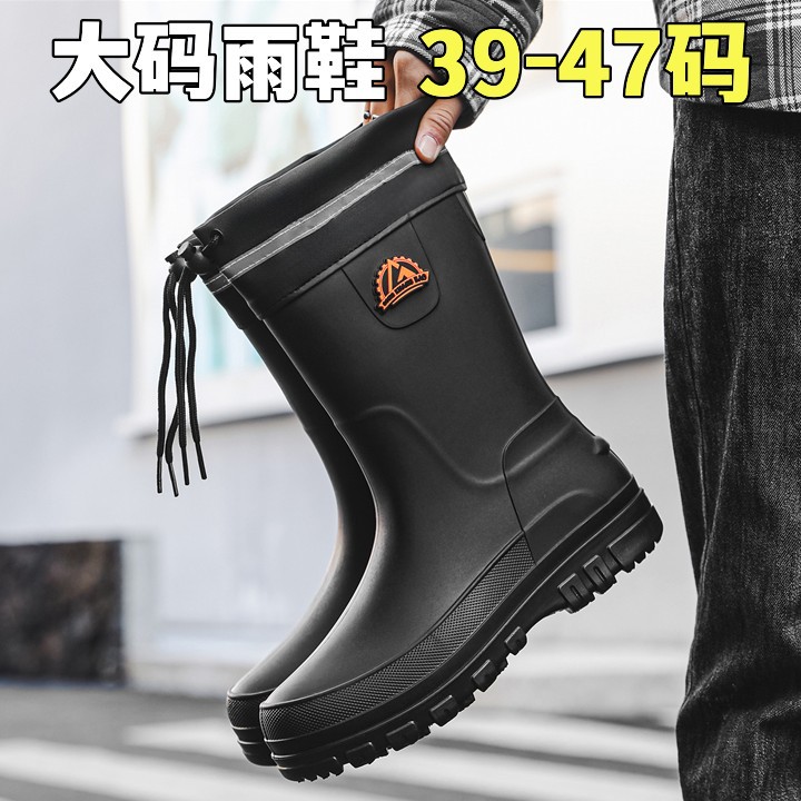 特大サイズ 39-47 ミッドチューブレインブーツメンズ防水、滑り止め、耐摩耗性プラスコットンレインブーツキッチン釣りラバーシューズ