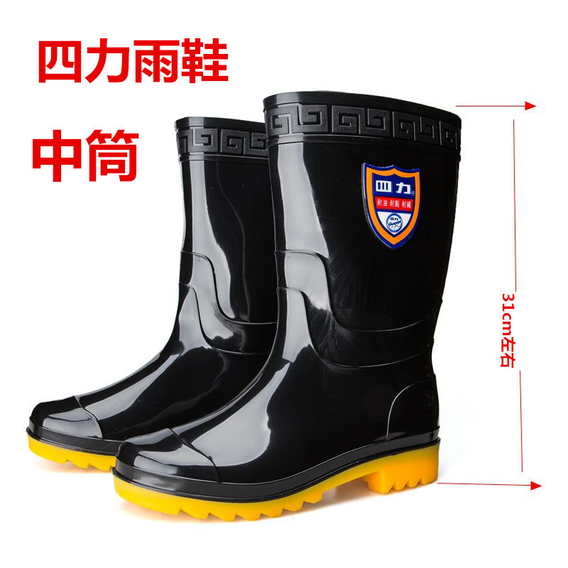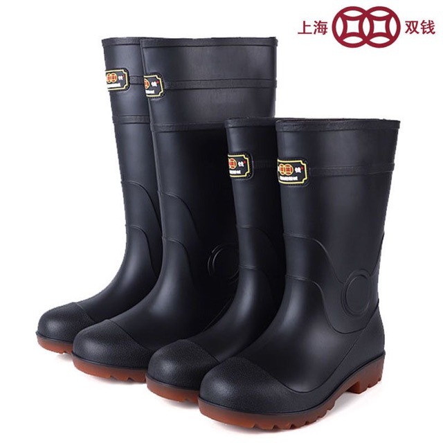 直売上海双銭砂面三防労保雨靴卸売り耐油酸アルカリ黒色雨靴