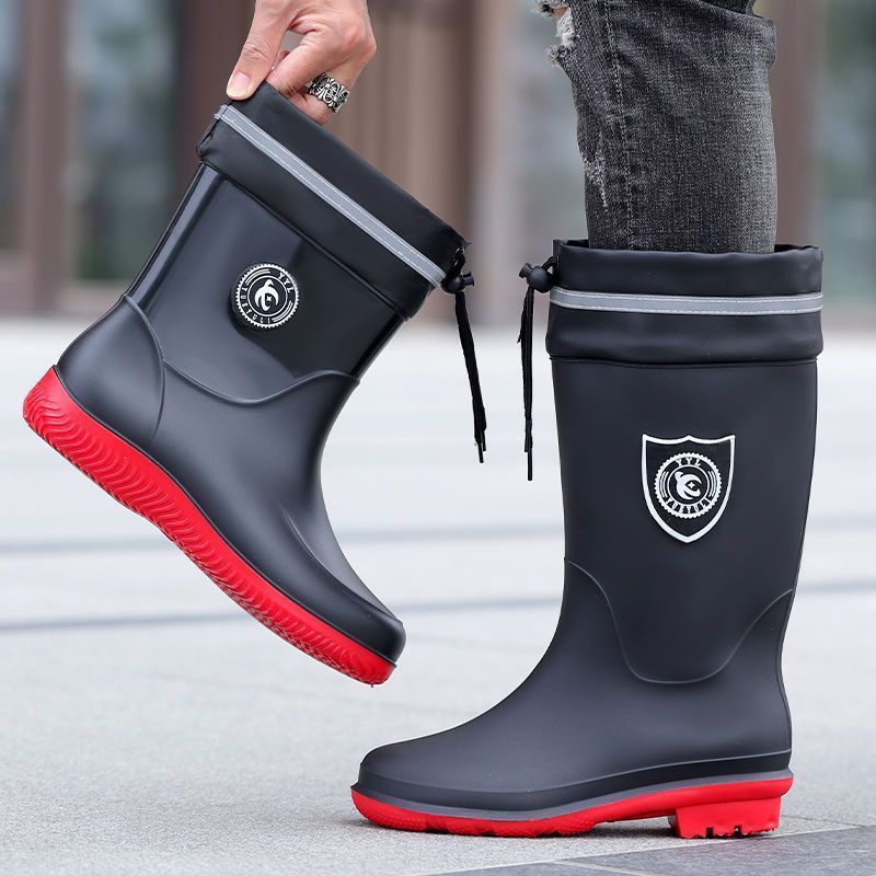 黒い高筒男雨靴クラシック労働保護靴中筒防水ゴム靴滑り止め男水靴保温カバー雨靴男靴