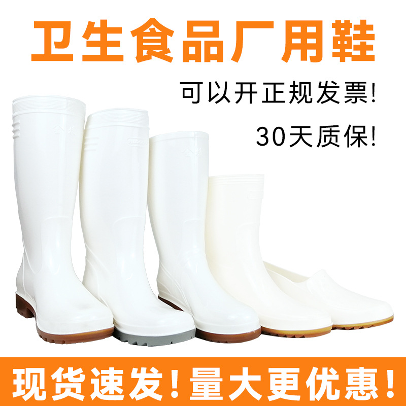 現物は白い雨靴を提供しています。