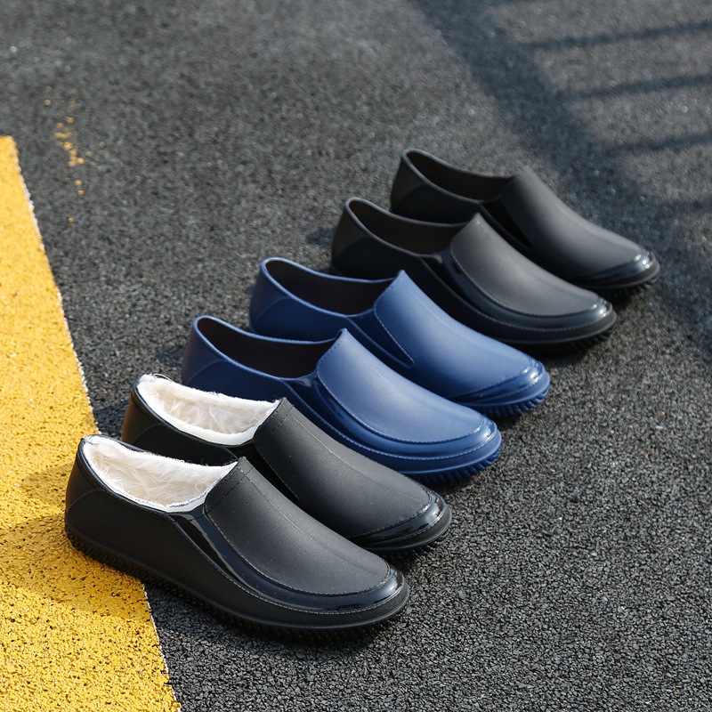 防水靴、メンズショートレインブーツ、メンズウォーターシューズ、ローカットワークシューズ、防水、滑り止め、耐摩耗性、耐久性のあるキッチンラバーシューズ