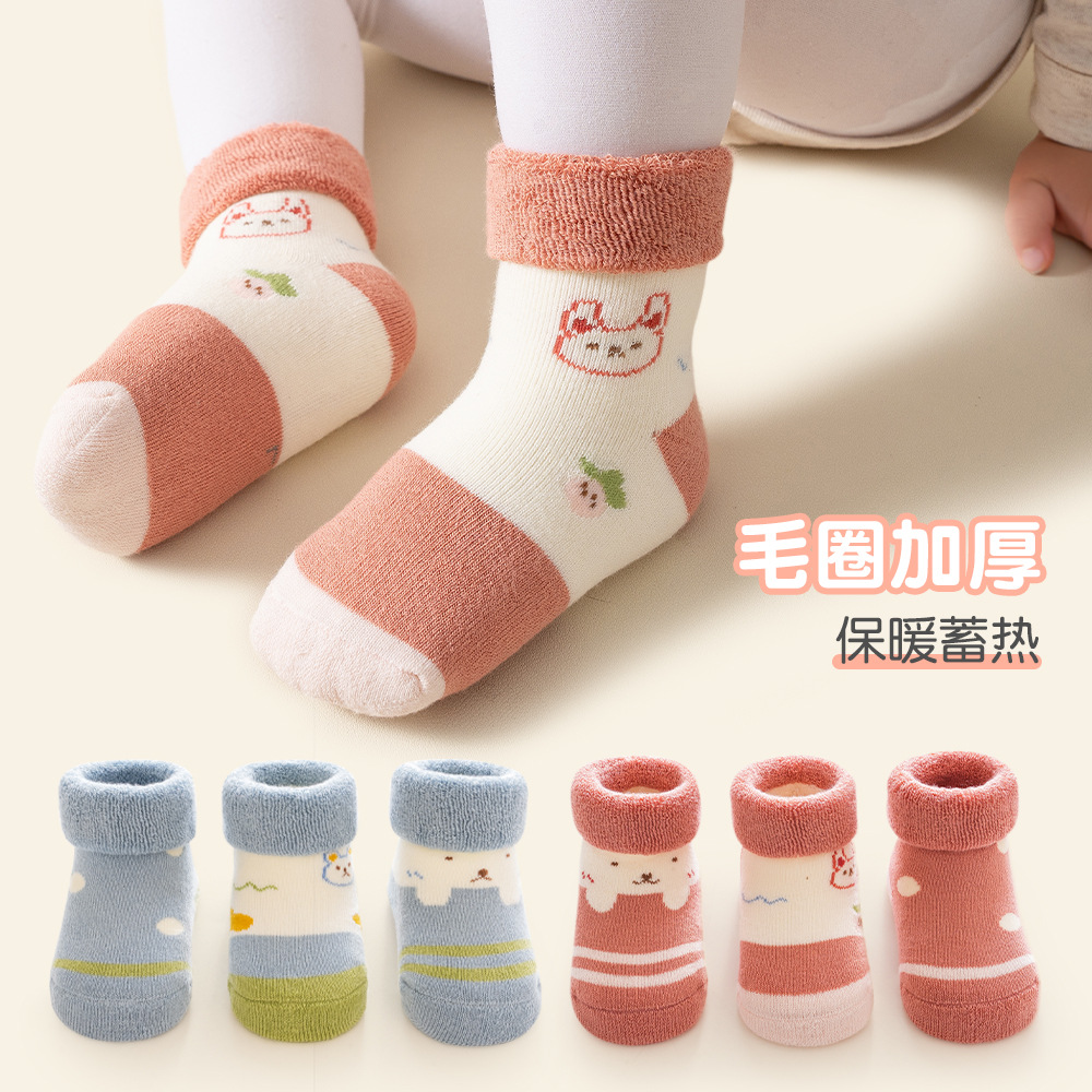2023年新型ベビー靴下秋冬は保温新生児毛輪靴下の松口漫画子供のストッキングを厚くした