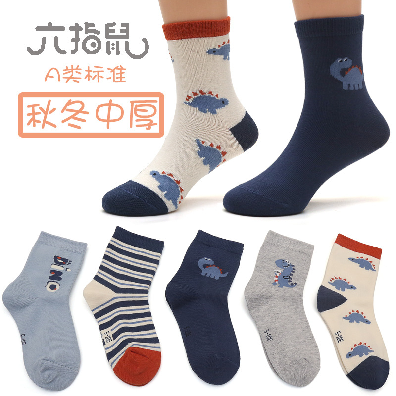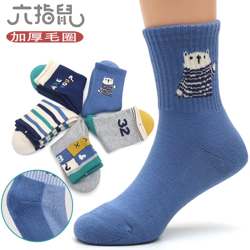 六指鼠童靴下秋冬保温精練綿綿厚金歳色吸汗縞男の子大宝熊靴下男