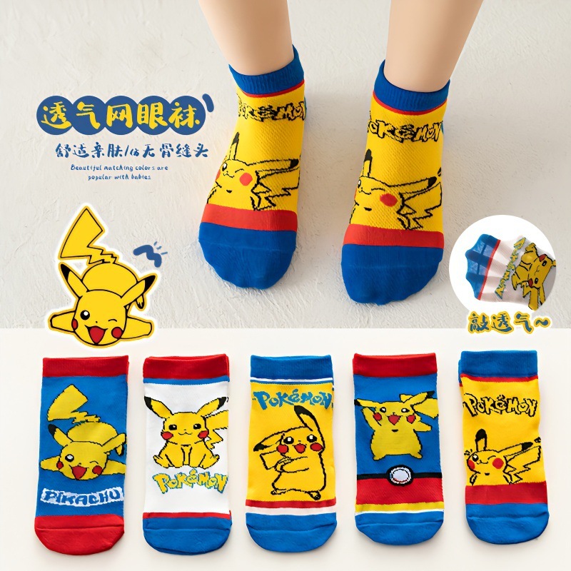 子供用靴下綿靴下春夏の薄いメッシュ靴下男の子用靴下8-12歳の漫画ピカチュウの子供用靴下