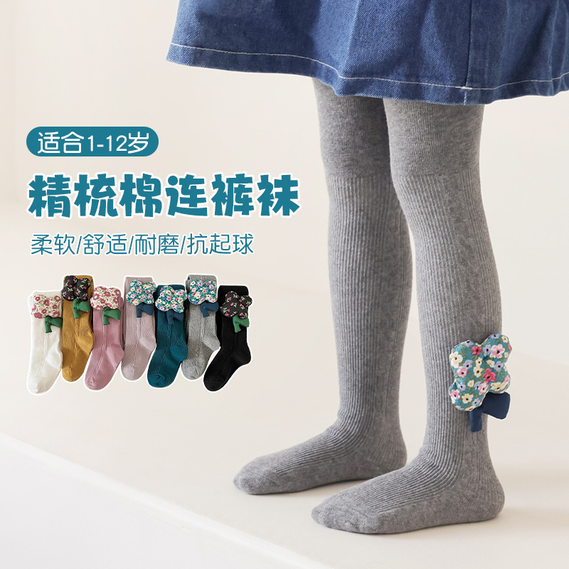 春の新型の竹トンボの蝶結びの子供のズボンの靴下の女の子の外はレギンスの靴下を履いて、赤ちゃんの靴下を開けることができます。