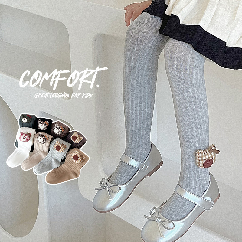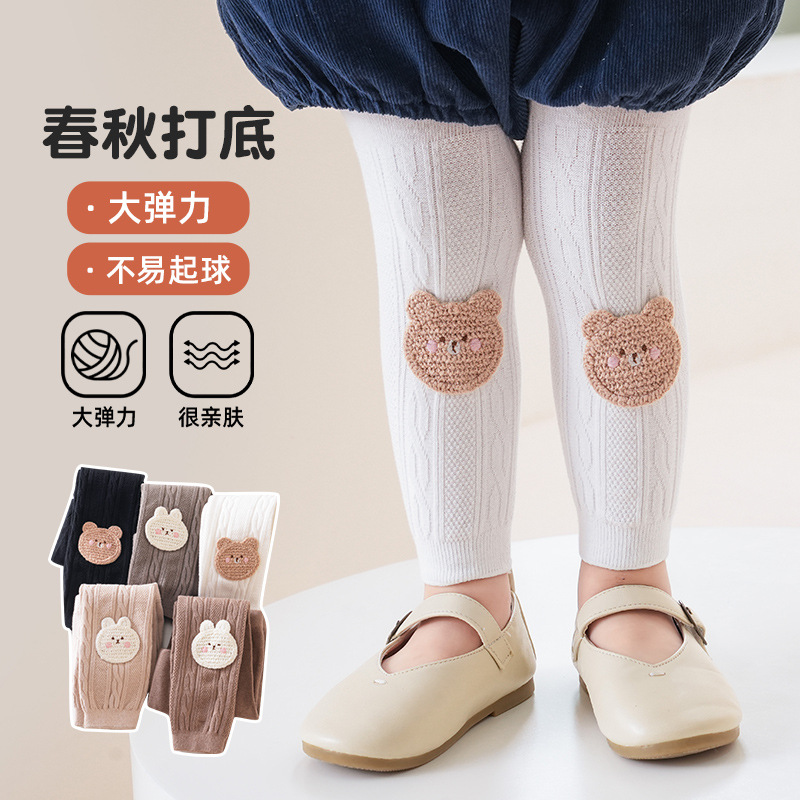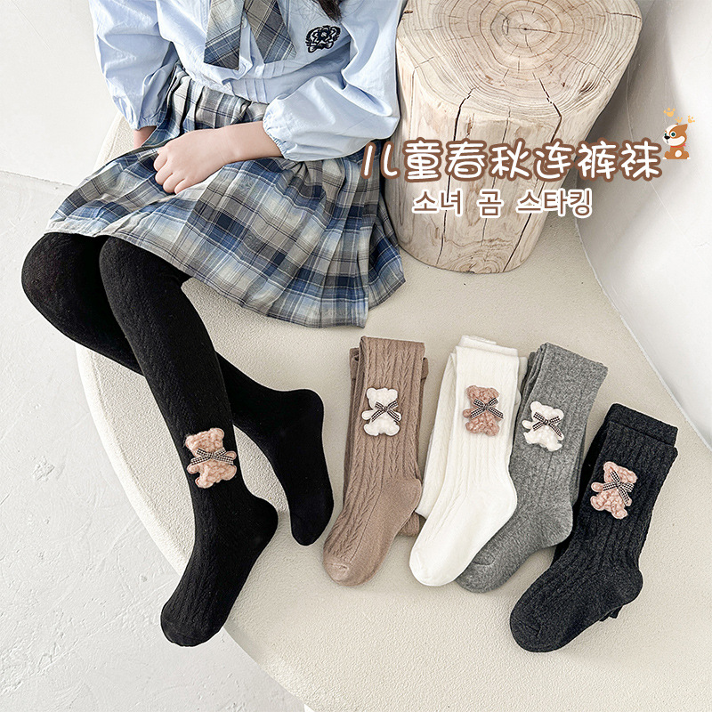 立体の米の熊のズボンの靴下の女の子の韓国版の春と秋の薄い金の綿の洋風の王女はズボンの靴下の子供のズボンを打ちます。