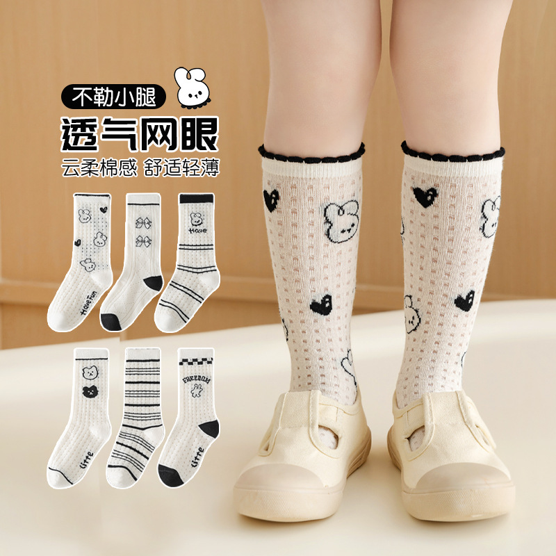 熊の子供の靴下の夏の薄いタイプの中筒のメッシュの靴下の赤ちゃんの春夏の赤ちゃんの靴下の精練綿の子供の靴下の卸売り