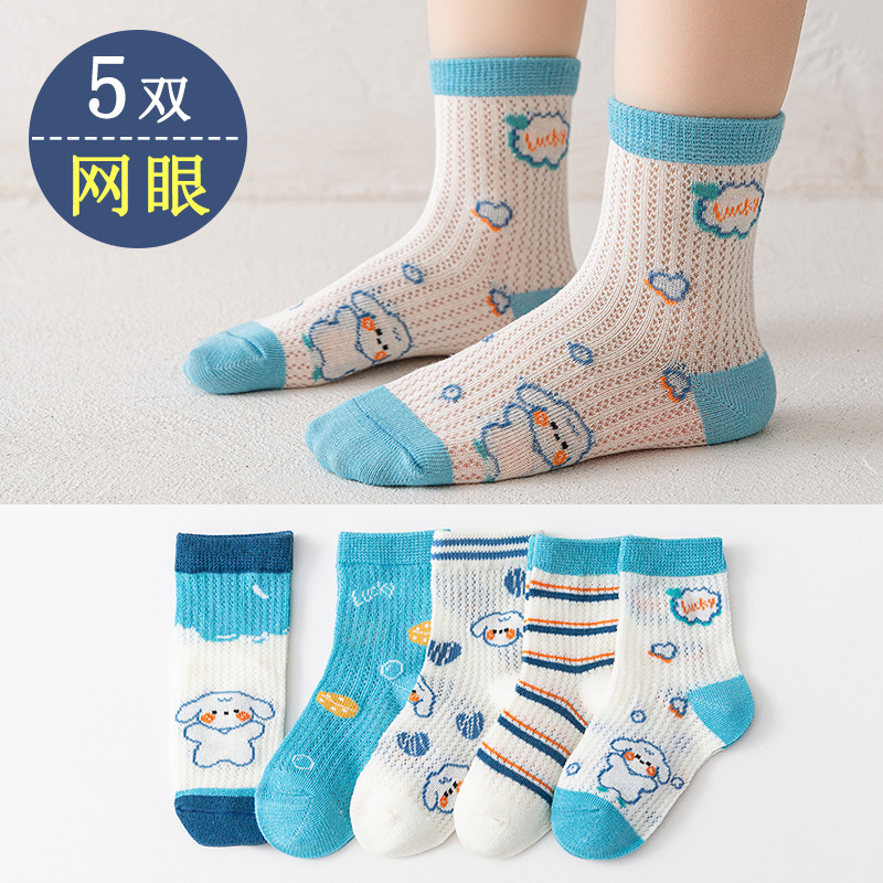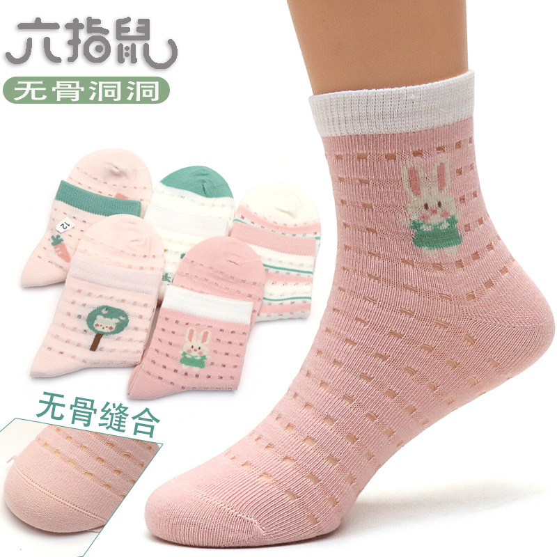 六つの指のネズミの夏の網の目の通気性の漫画の子供の靴下は汗の穴の熊の骨がない縫合の中筒の精櫛の綿の靴下を吸います。