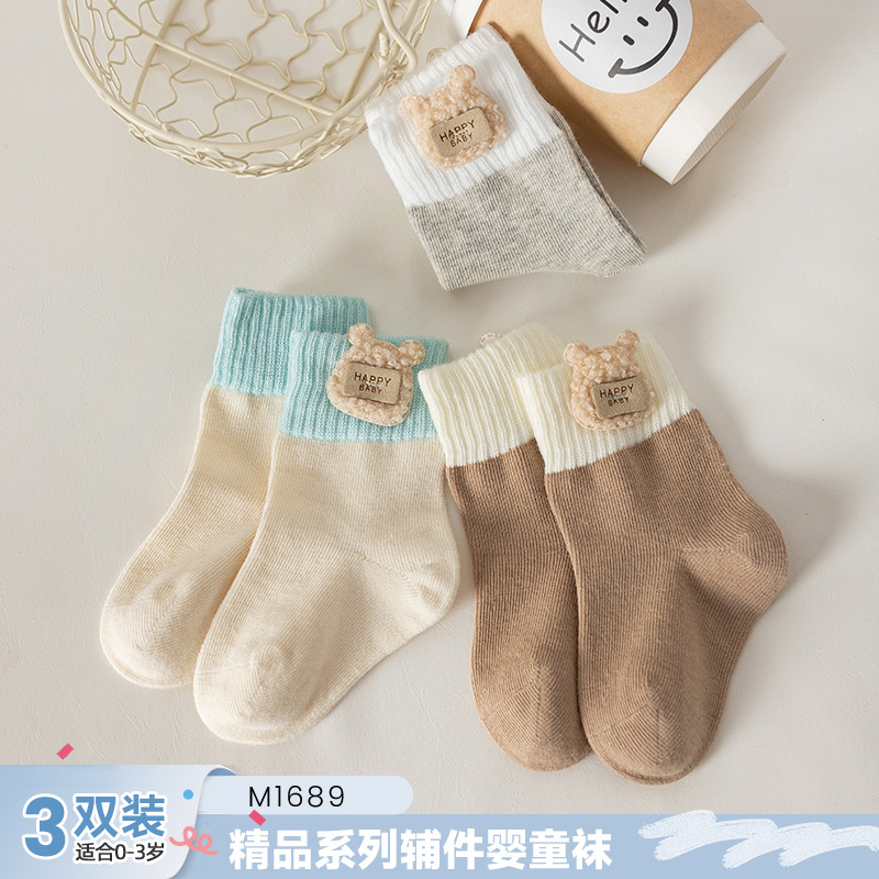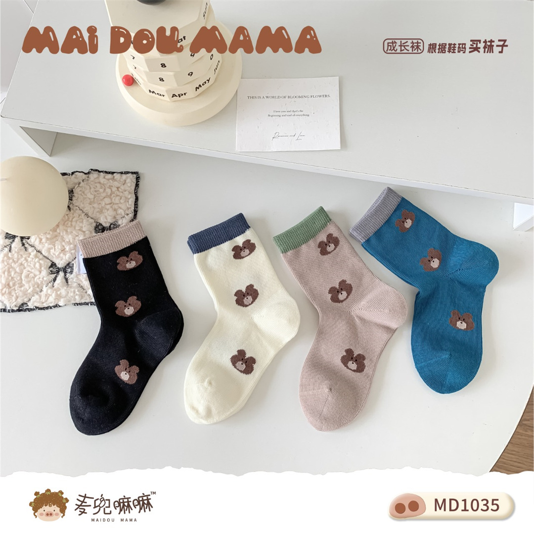 麦袋じゃないですか。子供用靴下秋冬手作目熊男女童中筒靴下綿靴下成長靴下MD1035