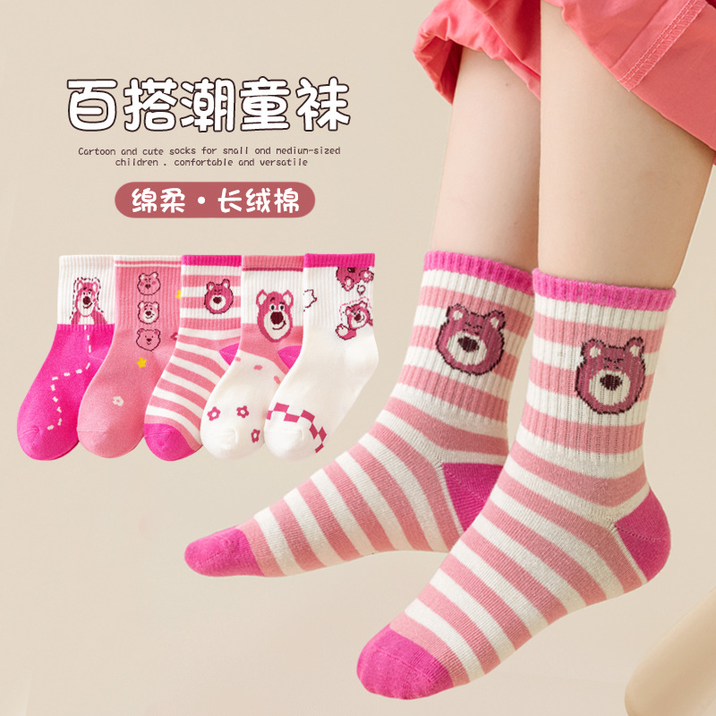 春と秋の新しい子供用靴下綿の男の子と女の子の靴下ミッドチューブ柔らかい肌に優しい漫画クマ子供の靴下卸売
