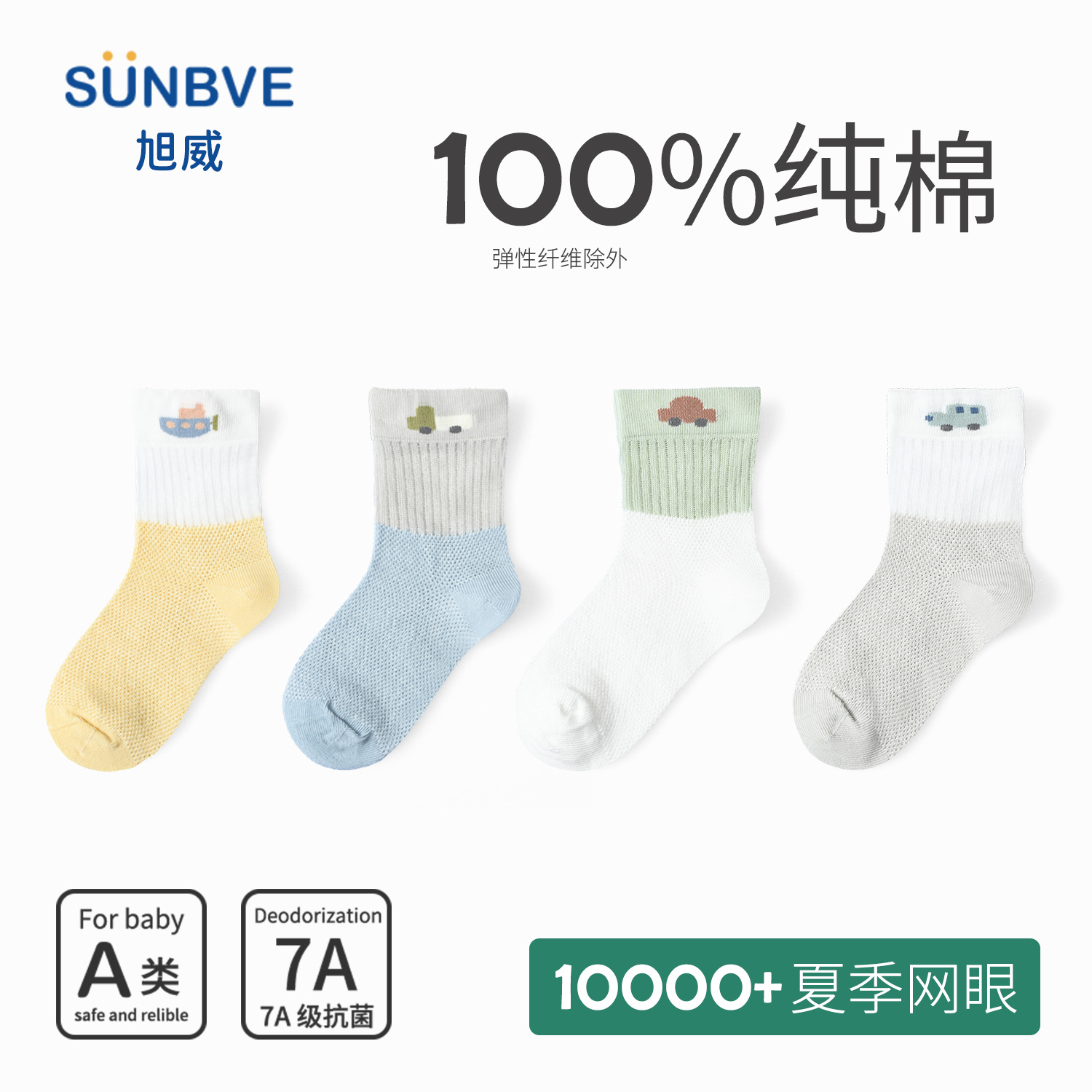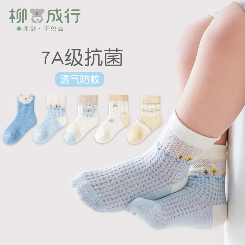 柳成行25春夏ベビー靴下夏メッシュ薄いモデル漫画熊赤ちゃん骨なし綿靴下子供抗菌靴下