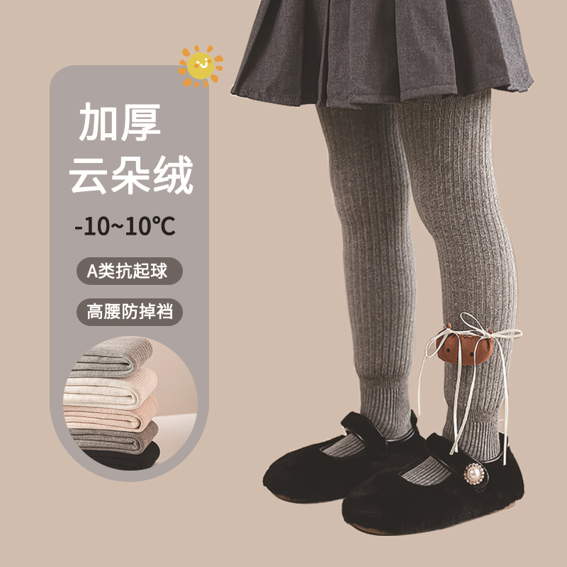 肌にキスしてボールを起こす女の子はズボンの靴下の子供にベルベットをつけて保温して高弾の赤ちゃんの靴下のa類の綿の秋冬の女性を厚くします。