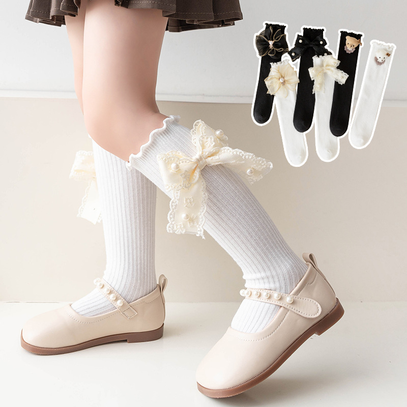 2024秋の新商品乳幼児赤ちゃん靴下A類精練綿かわいい熊飾り松羅口無骨手縫い