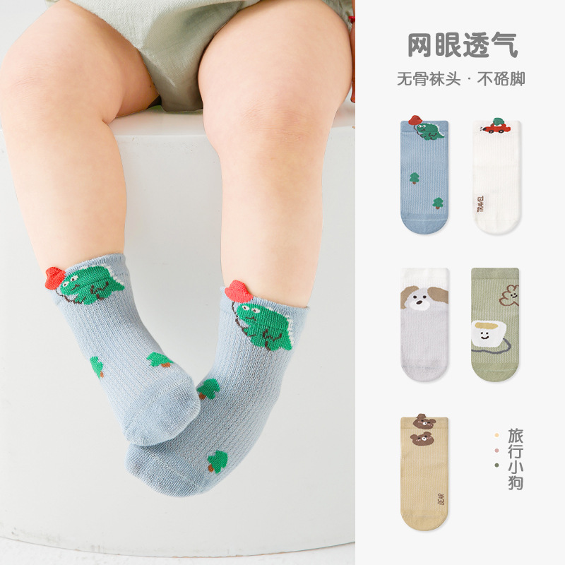 2024子供の靴下夏の薄いタイプの男の子の漫画の熊の綿の靴下の春夏の網の目のかわいい清新な赤ちゃんの靴下