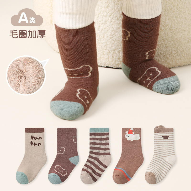 2023秋冬子供靴下敏榴男女秋アニメかわいい熊中大童綿靴下赤ちゃん靴下卸売り