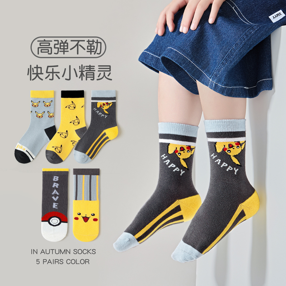 新しい男の子の靴下の秋の漫画のピカチュウの中で靴下の子供の靴下の中で大きい子供の綿の靴下の秋冬の赤ちゃんの靴下