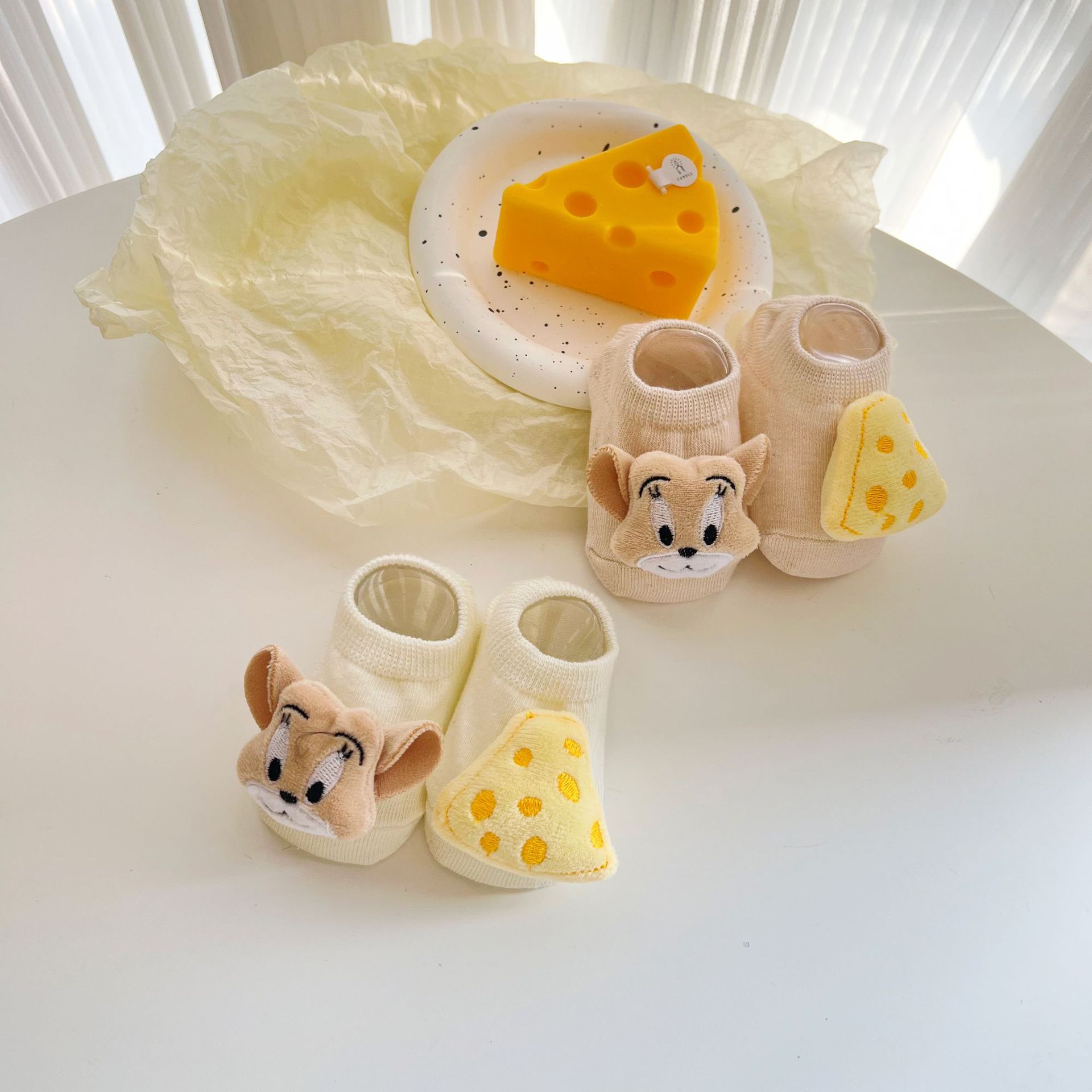 赤ちゃんの浅い口の子供の床の靴下のチーズのネズミのアニメーションの漫画の子供の船の靴下の赤ちゃんの新生児の学校の靴下