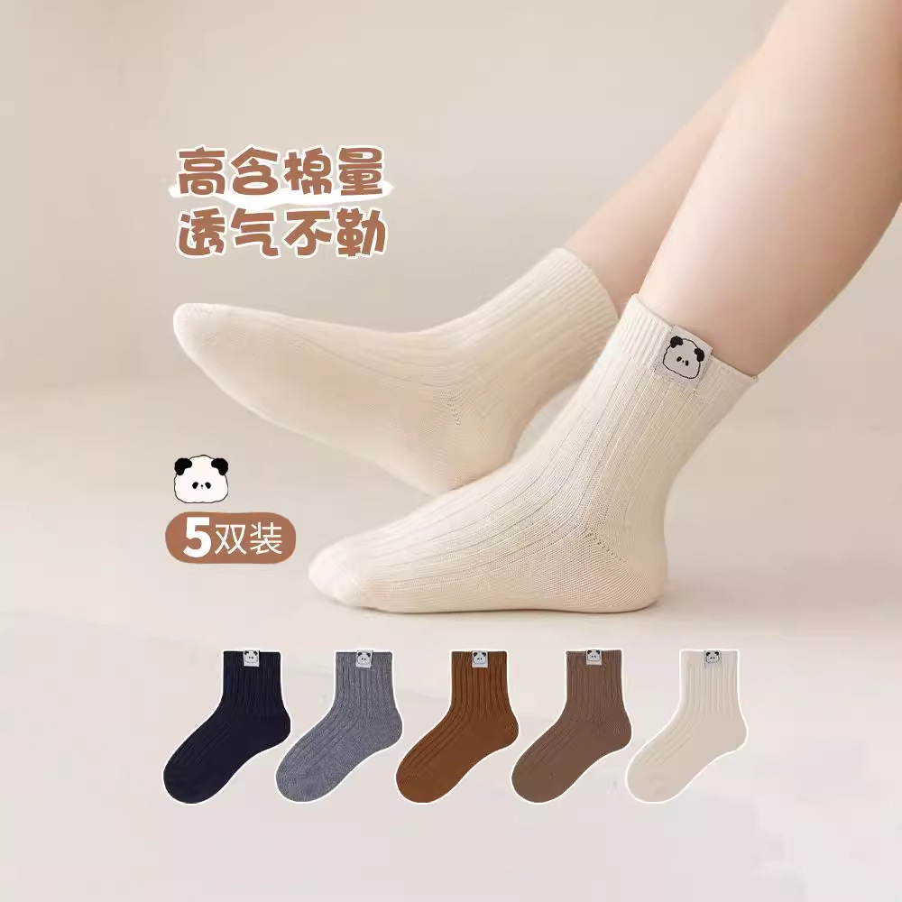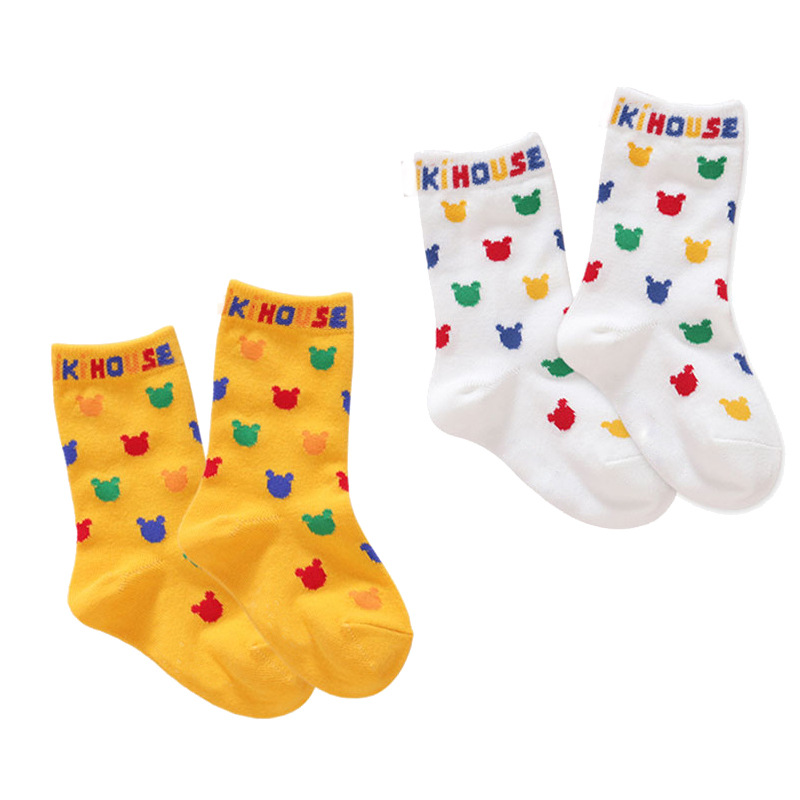 日本系アニメかわいい男女靴下春秋新型子供カラー熊頭アルファベットジャカード中筒靴下