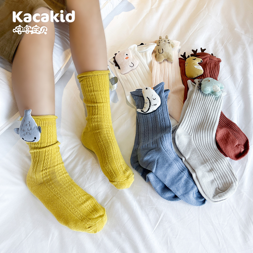 25インチの新しい秋冬子供用靴下、立体人形靴下、二本針韓国ベビーコットンソックス、ミッドチューブソックス、カーフソックス