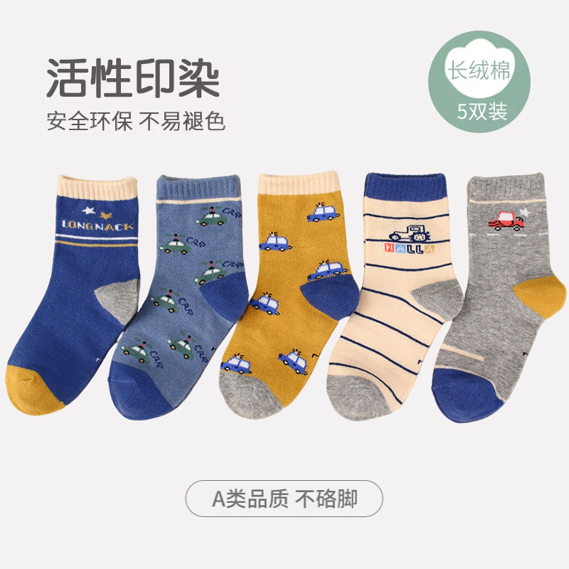 敏榴児童靴下秋冬漫画小自動車中筒靴下かわいい男の子靴下中大童通気綿靴下卸売り