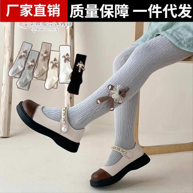 韓国版春と秋のニット綿の熊の女の子のパンストの子供の赤ちゃんのレギンスの靴下のダンスの靴下のメーカーの卸売り