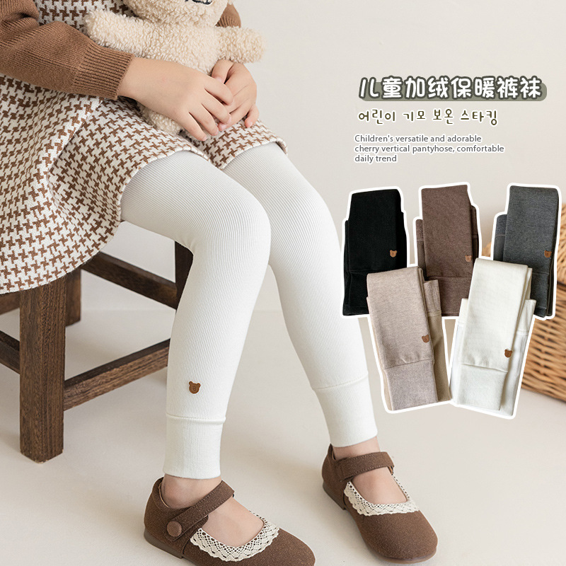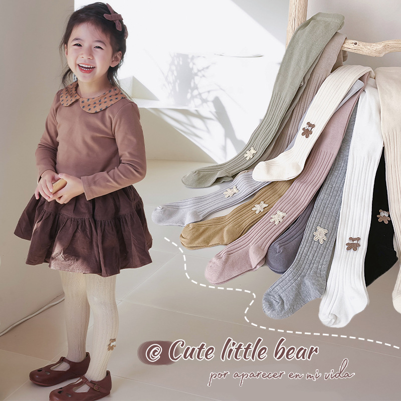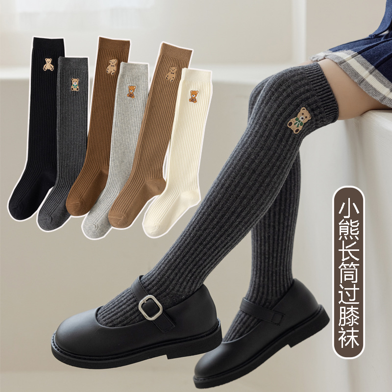 子供用ストッキング秋冬韓国女の子刺繍ベアハイソックス