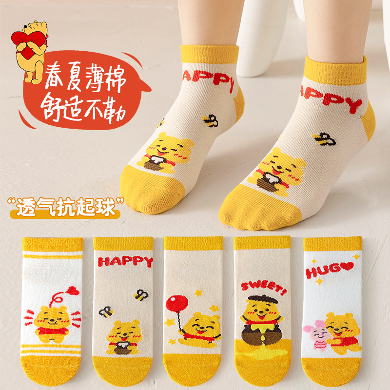 2024子供の靴下夏の薄いタイプの男の子の漫画の熊の綿の靴下の春夏の網の目のかわいい清新な赤ちゃんの靴下