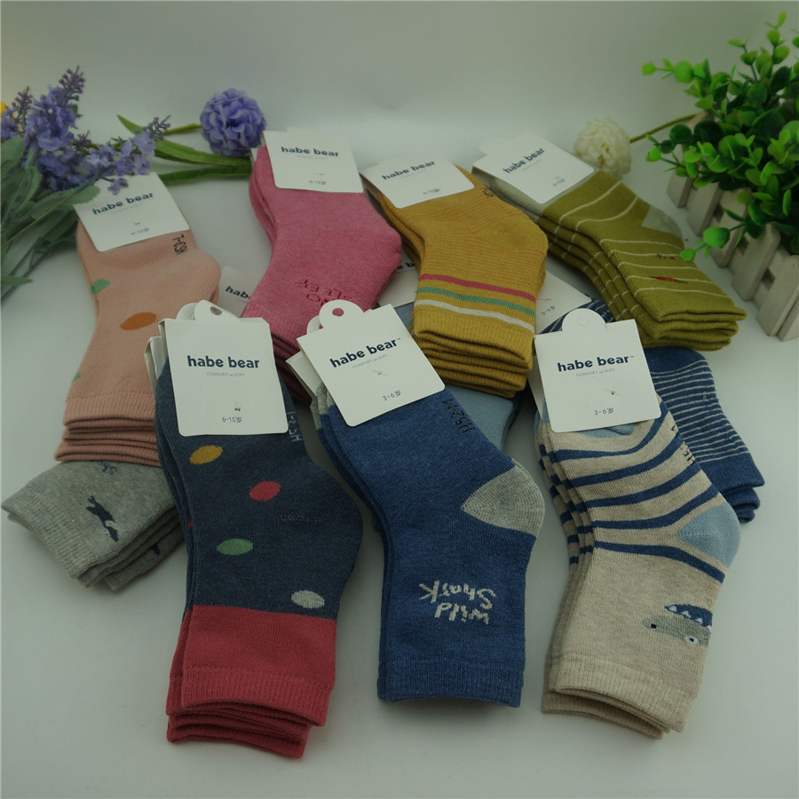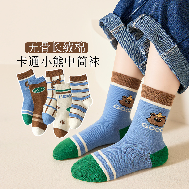 敏榴児童靴下秋冬漫画熊中筒靴下かわいい男の子女の子靴下中大童通気綿靴下