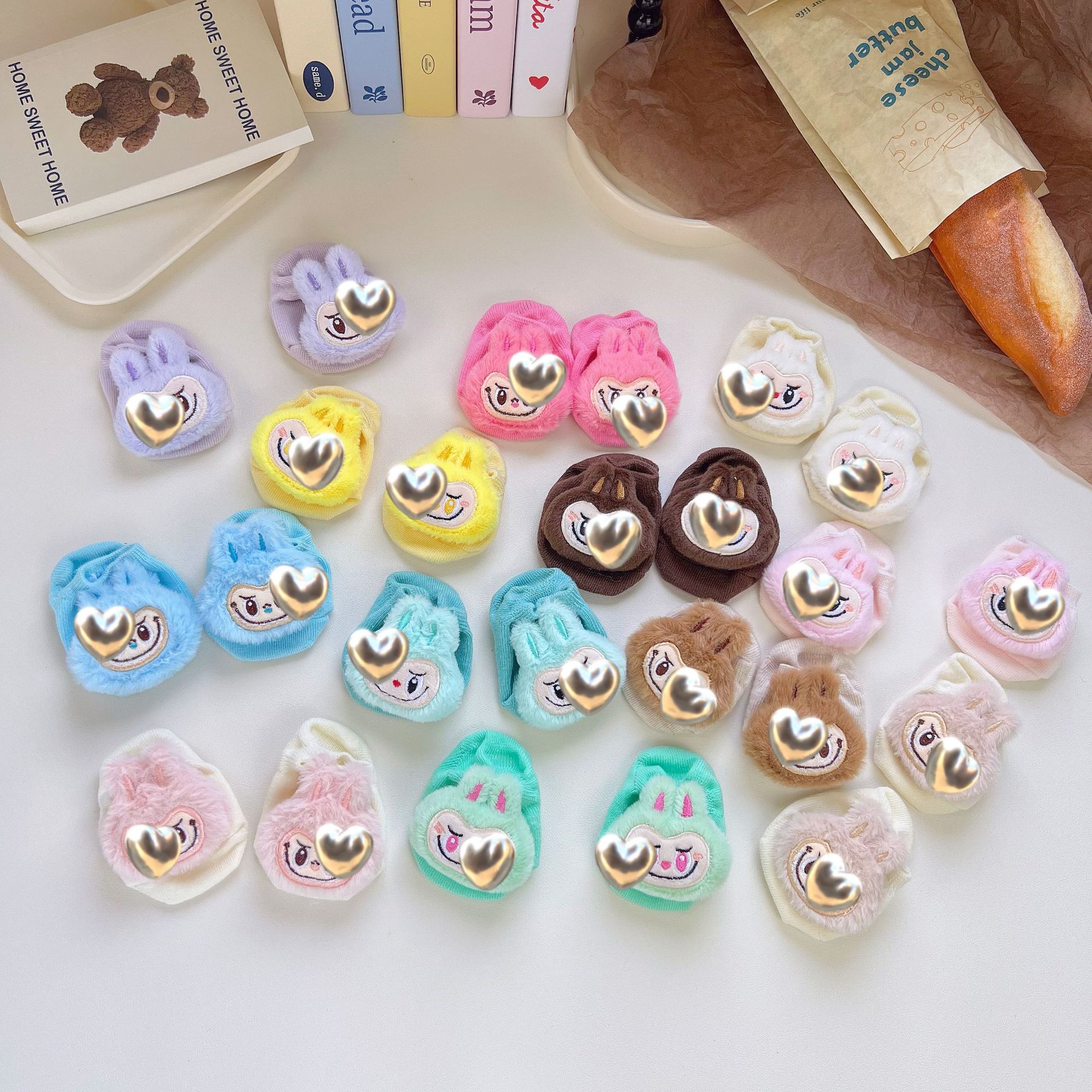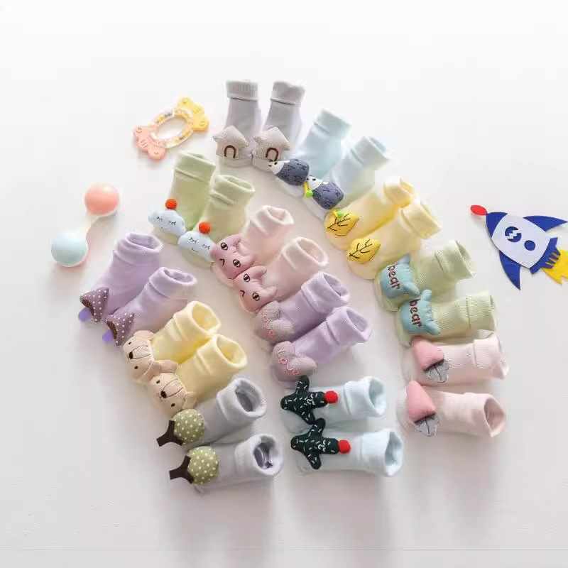24ins新型かわいい立体公仔靴下点ゴム綿靴下カバー宝宝綿船靴下赤ちゃん見えない靴下卸売り