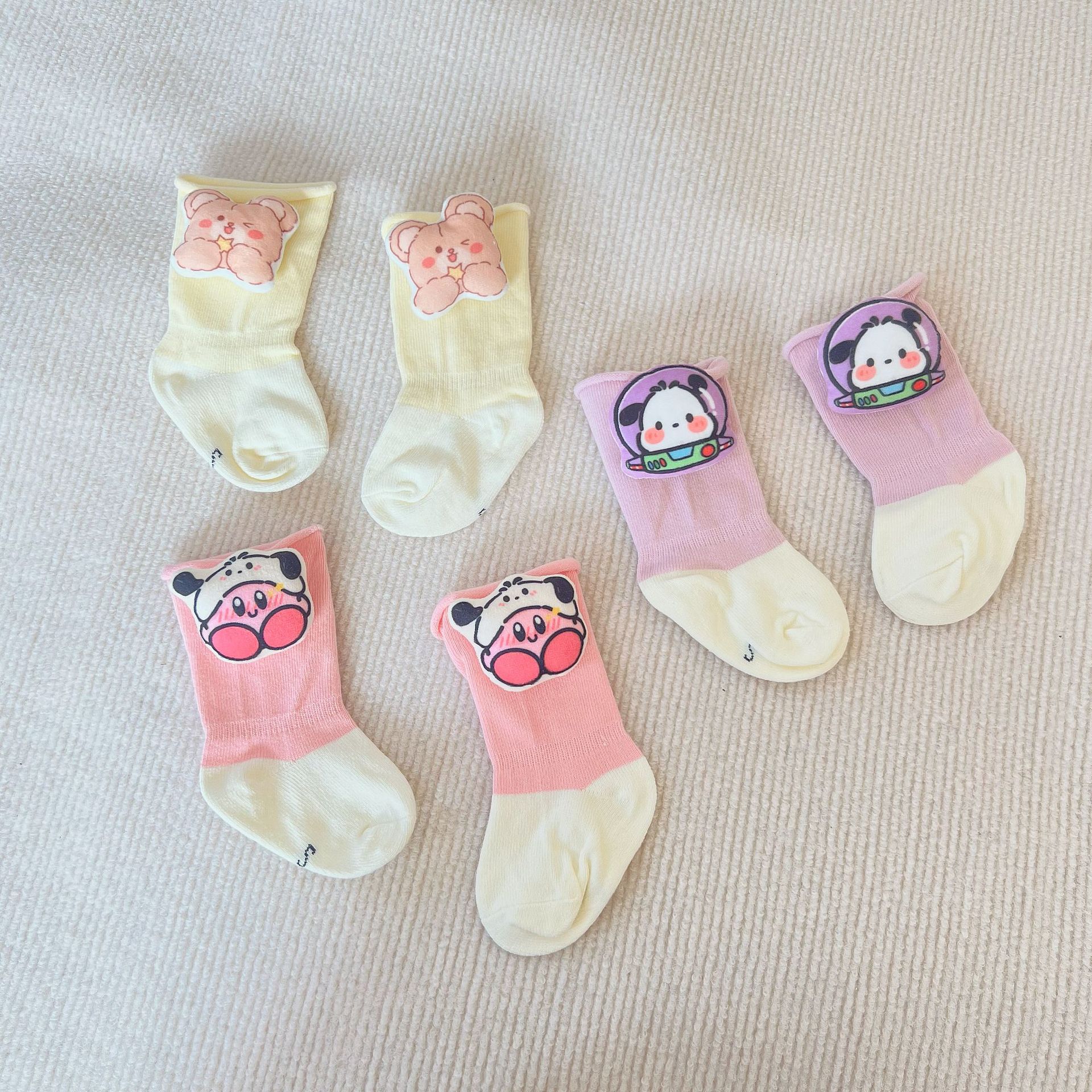 23新型ins韓国版装飾赤ちゃん靴下春と秋の色合わせのかわいいアニメ子供綿靴下