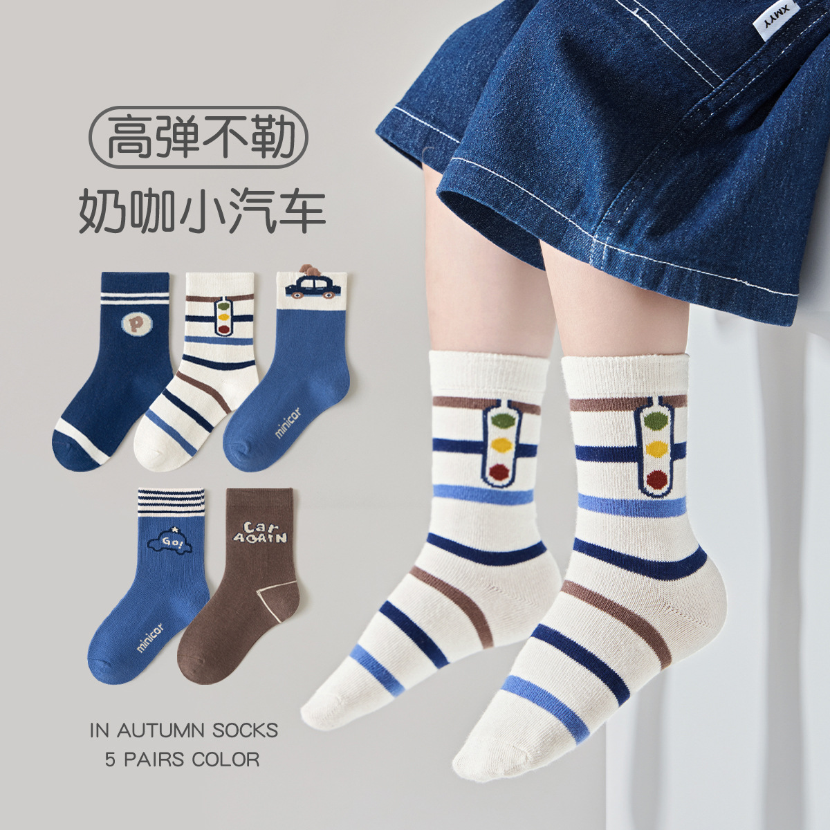 敏榴児童靴下秋冬漫画小自動車中筒靴下かわいい男の子靴下中大童通気綿靴下卸売り