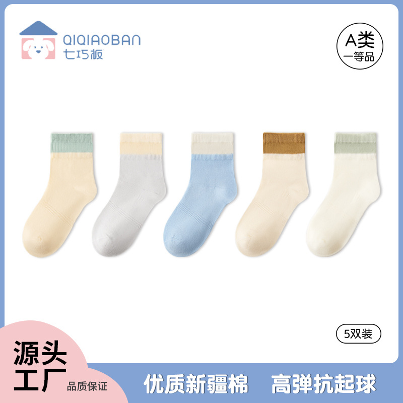 七巧板の子供の靴下の春の夏の薄いタイプの女の子の学生の靴下の中で子供の骨がない薄い綿の中で靴下の男の子の靴下